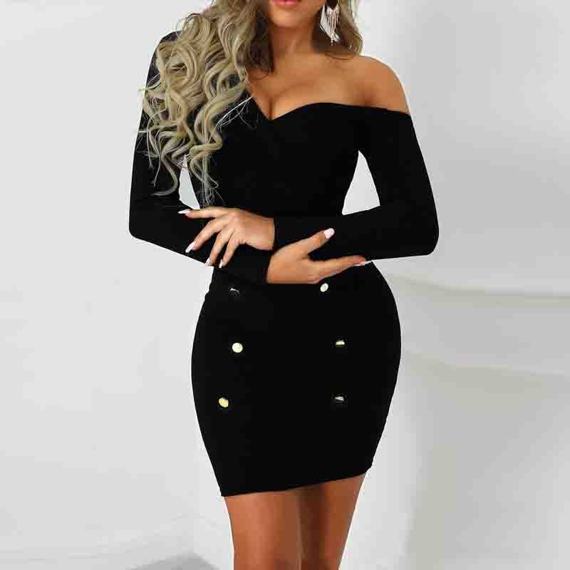 Material: Polyester Gender: Women Item Type:Dress Sleeve Length:Long Sleeve Color: Black Size: S, M, L, XL