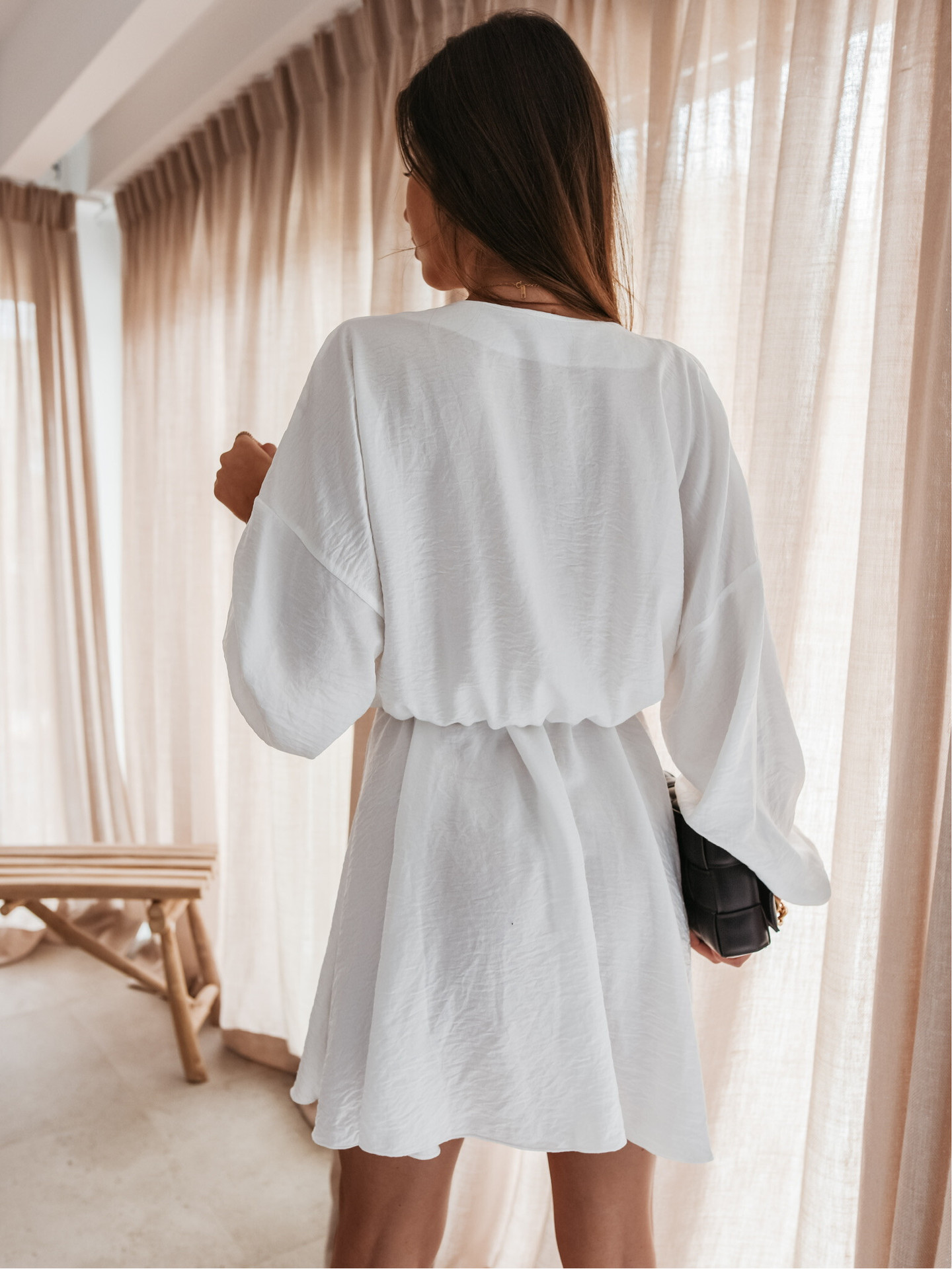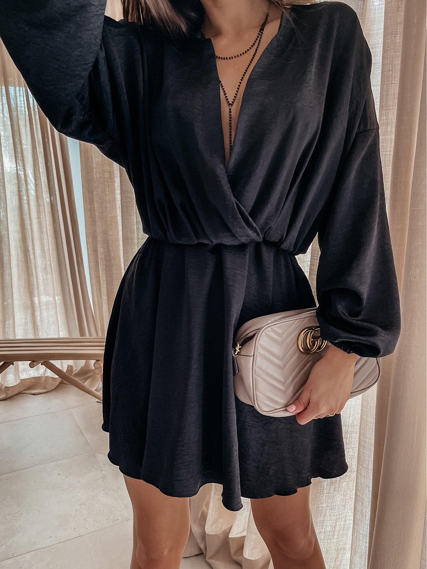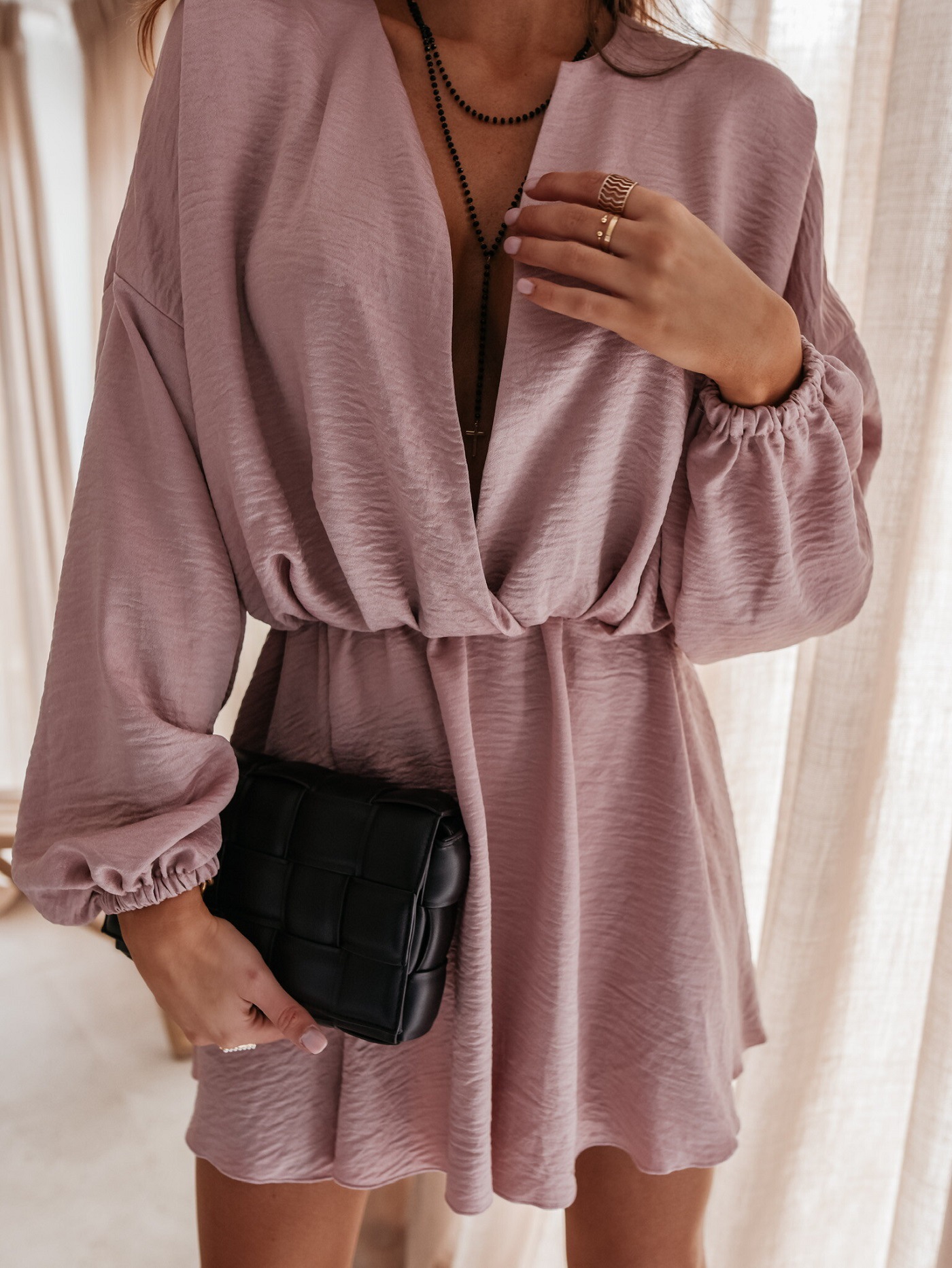 V-Neck High Waist Sexy Fashion Solid Color Long-Sleeved Dress