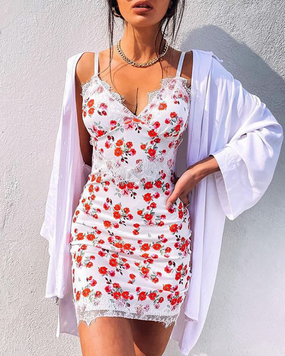 Floral Fashion Sling Sexy V-Neck Sleeveless Dress