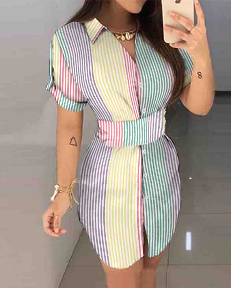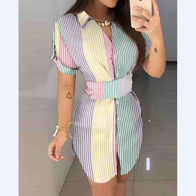 Women's Striped Short Sleeve Printed Dress