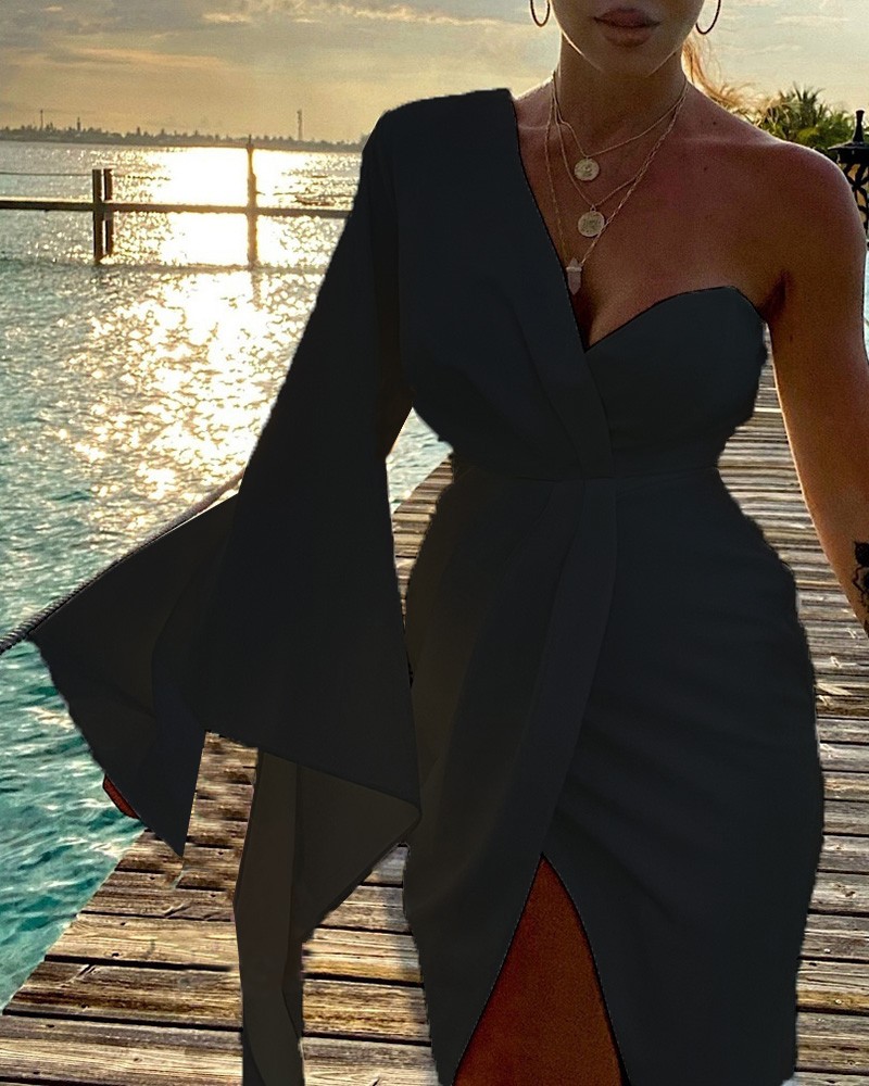 Solid Color Bubble Short-Sleeved Slim High Waist Princess Dress