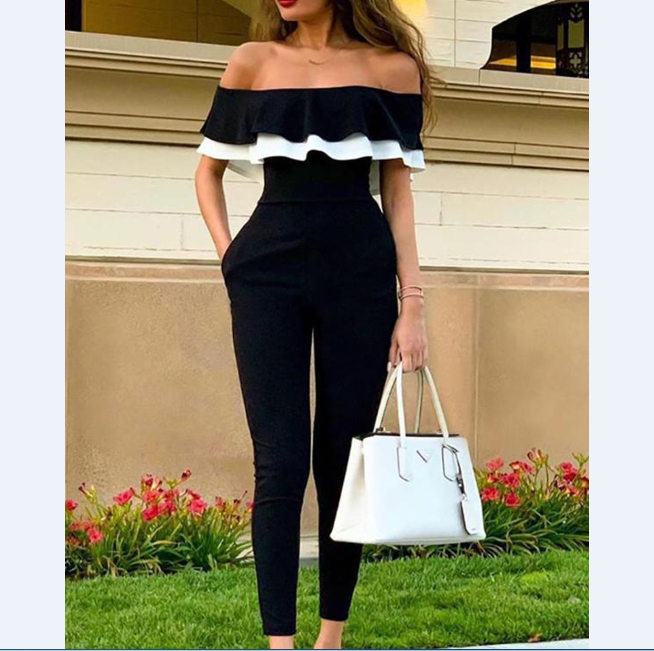 Sexy Strapless Slim Short Sleeves Ruffle Jumpsuit