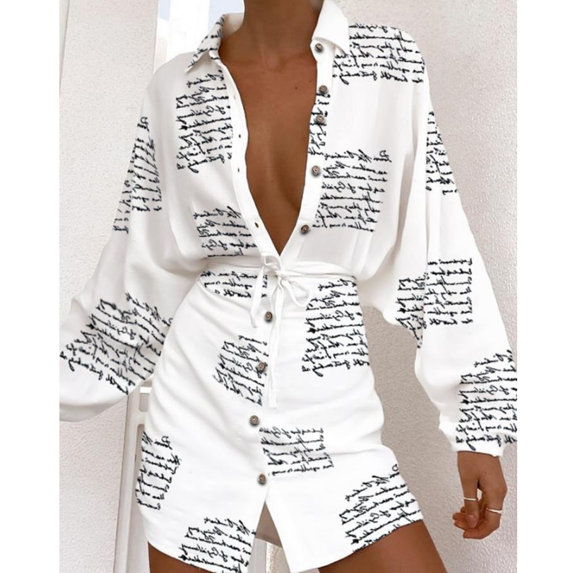 Sexy Short-Sleeved Printed Split Two-Piece Dress
