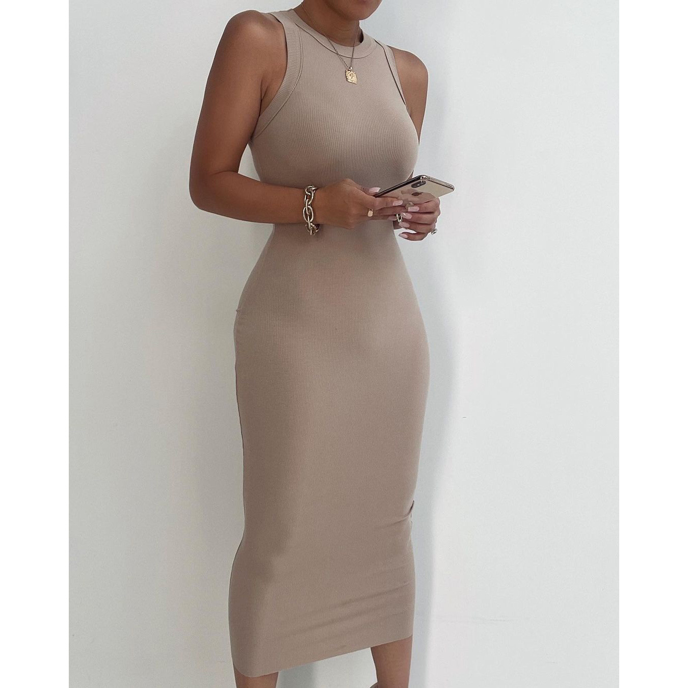 Solid Color Tight Fitting Sling Sleeveless Dress