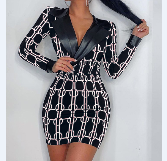 Long Sleeve Casual Printed Lapel Body Dress
