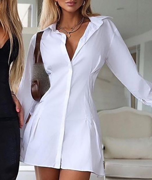 Solid Color Bubble Short-Sleeved Slim High Waist Princess Dress