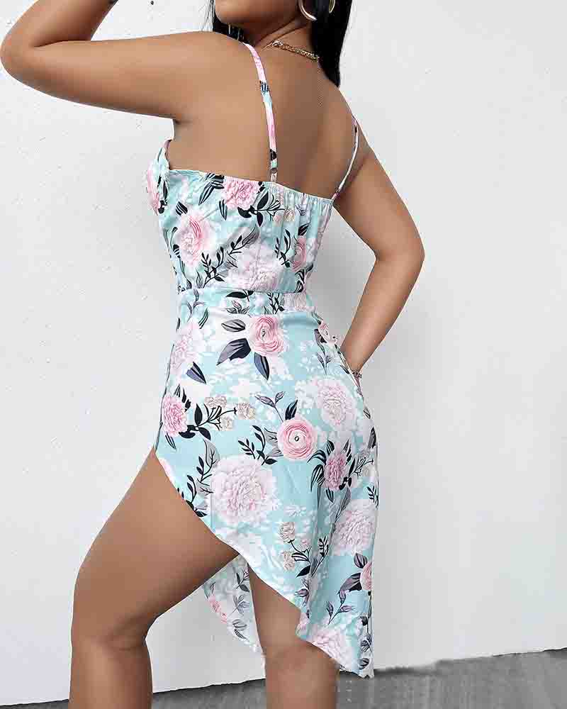 Sexy Blue Flower Print Sling Dress