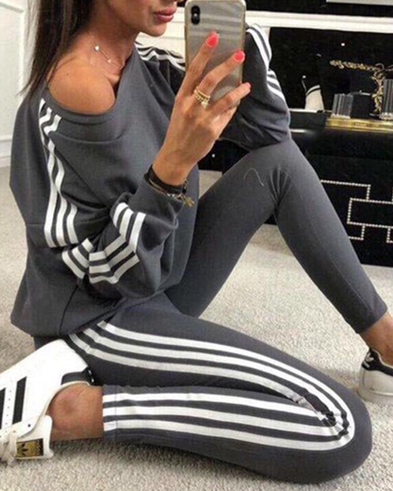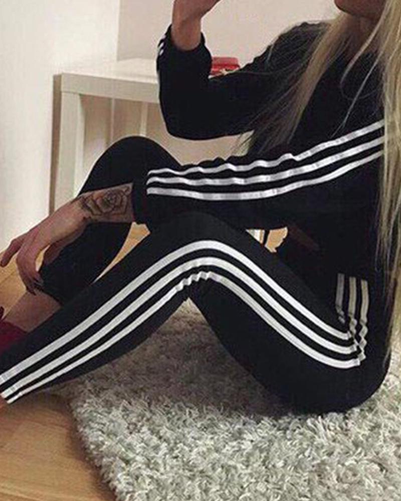 Round Neck Striped Long Sleeve Fashion Casual Two-Piece Set