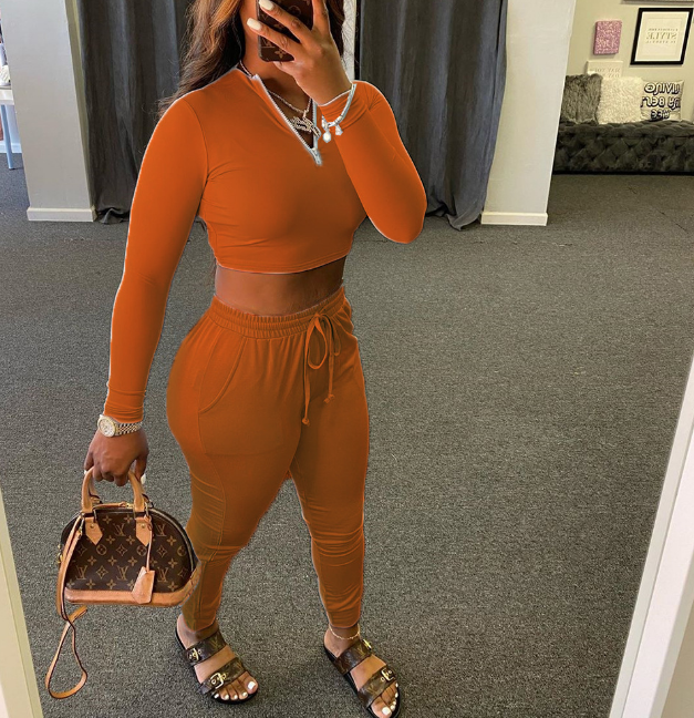 Women'S Solid Color Fashion Tight Sexy Two-Piece Suit