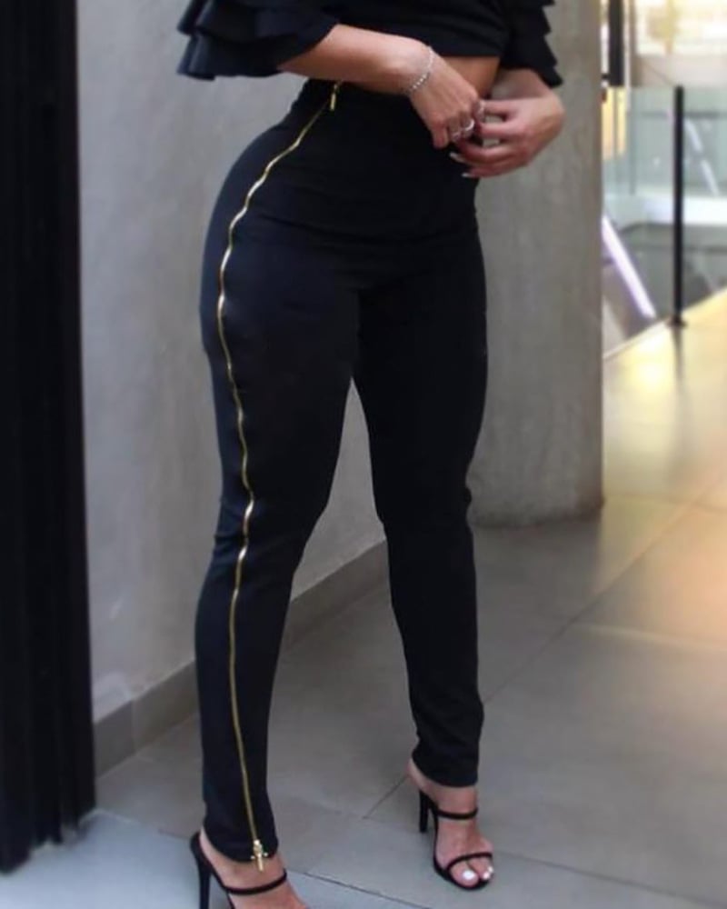 Design Slim Zipper High Waist Pants
