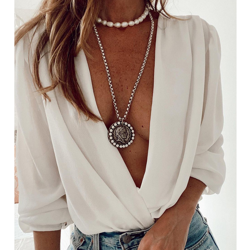Women'S Deep V-Neck Chiffon Shirt Top