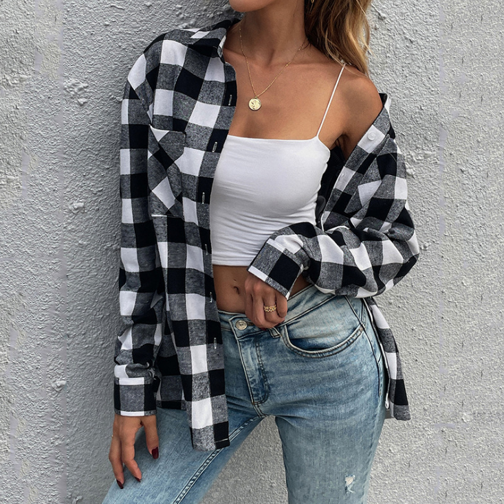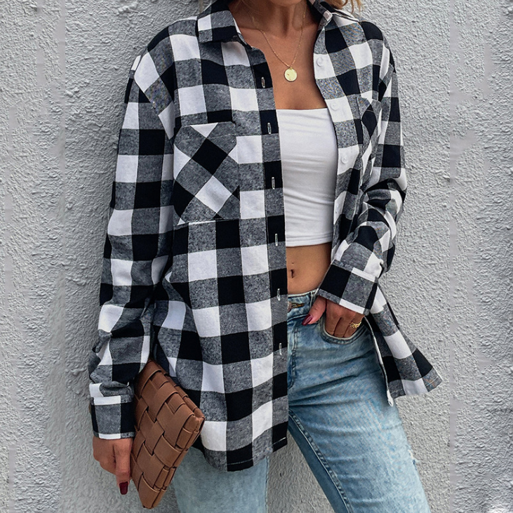 Women'S Plaid Cardigan Long Sleeve Casual Top Shirt