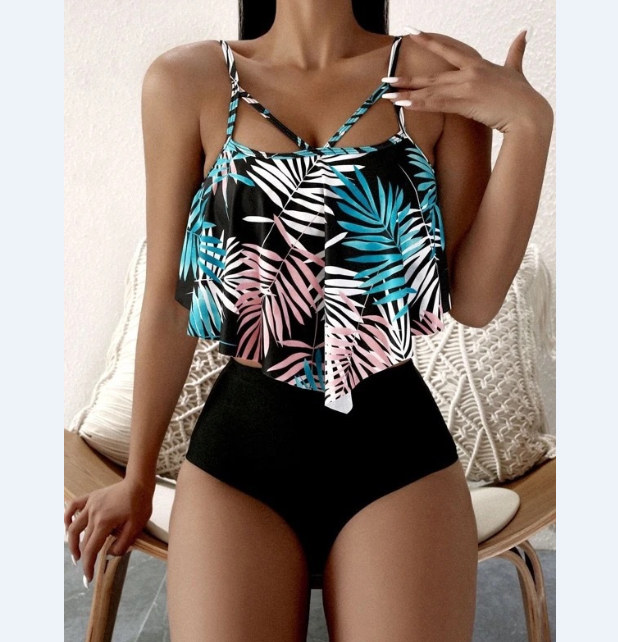 Floral Sexy Backless Print High Waist Ruffled Bikini