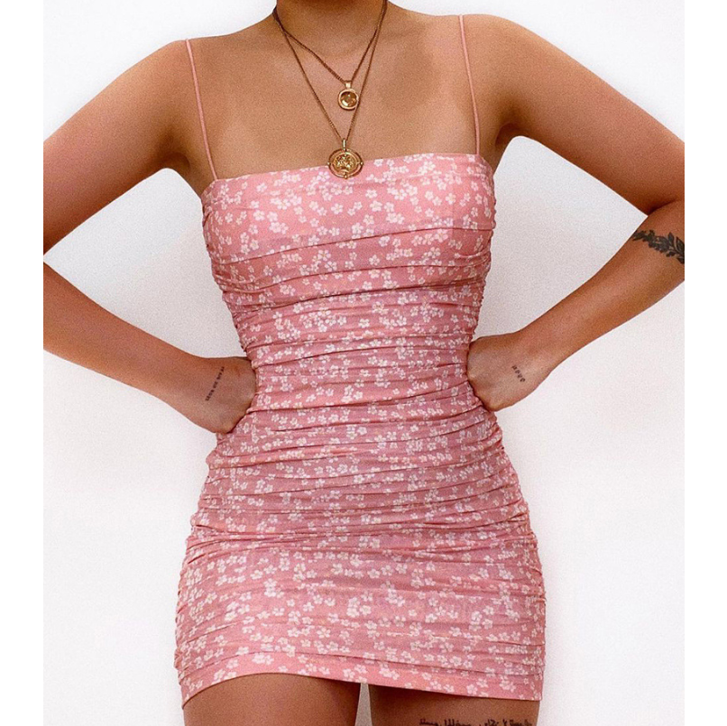 Material: Polyester Gender: Women Item Type:Dress Sleeve Length: Sleeveless Color: Pink Size: S,M,L,XL
