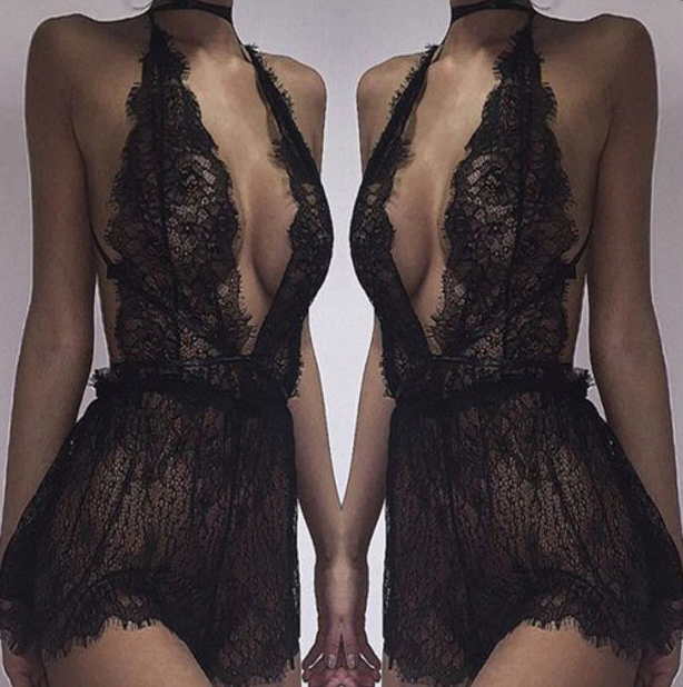 Fabric: Lace Gender: Women Item Type: One Piece Colour: Black Size: S, M, L, XL, XXL