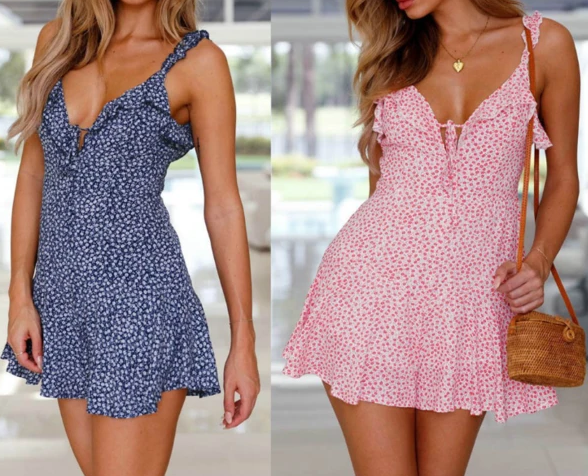 Material: Polyester Gender: Women Item Type:Dress Sleeve Length: Sleeveless Color: Pink, Blue Size: S, M, L, XL