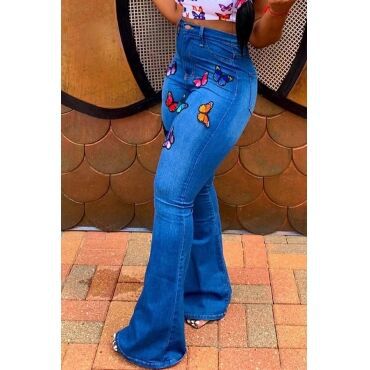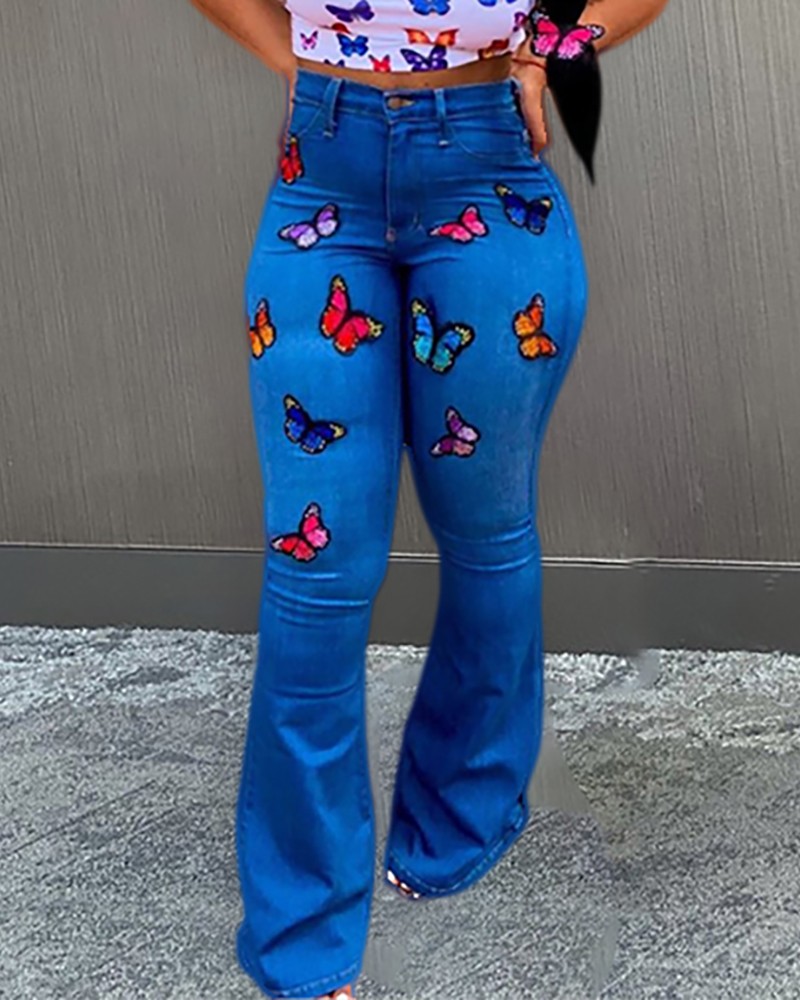 Women'S Sexy Slim Embroidered Butterfly Jeans