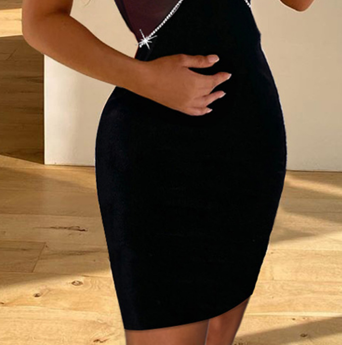Material: Polyester Gender: Women Item Type:Dress Sleeve Length: Sleeveless Color: Black Size: S,M,L,XL