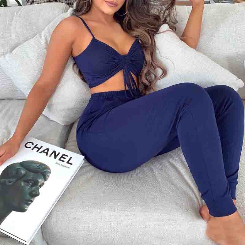 Material: Polyester Gender: Women Item Type:Two-Piece Color: Dark Blue Size: S, M, L, XL
