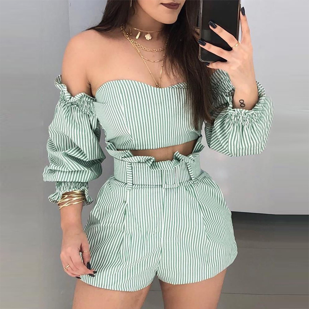 Sexy Women'S One-Shoulder Striped Two-Piece Suit
