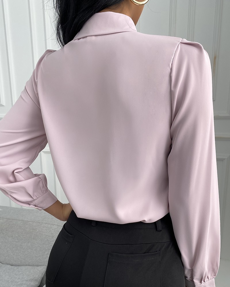 Temperament Solid Color Long-Sleeved Chiffon Shirt