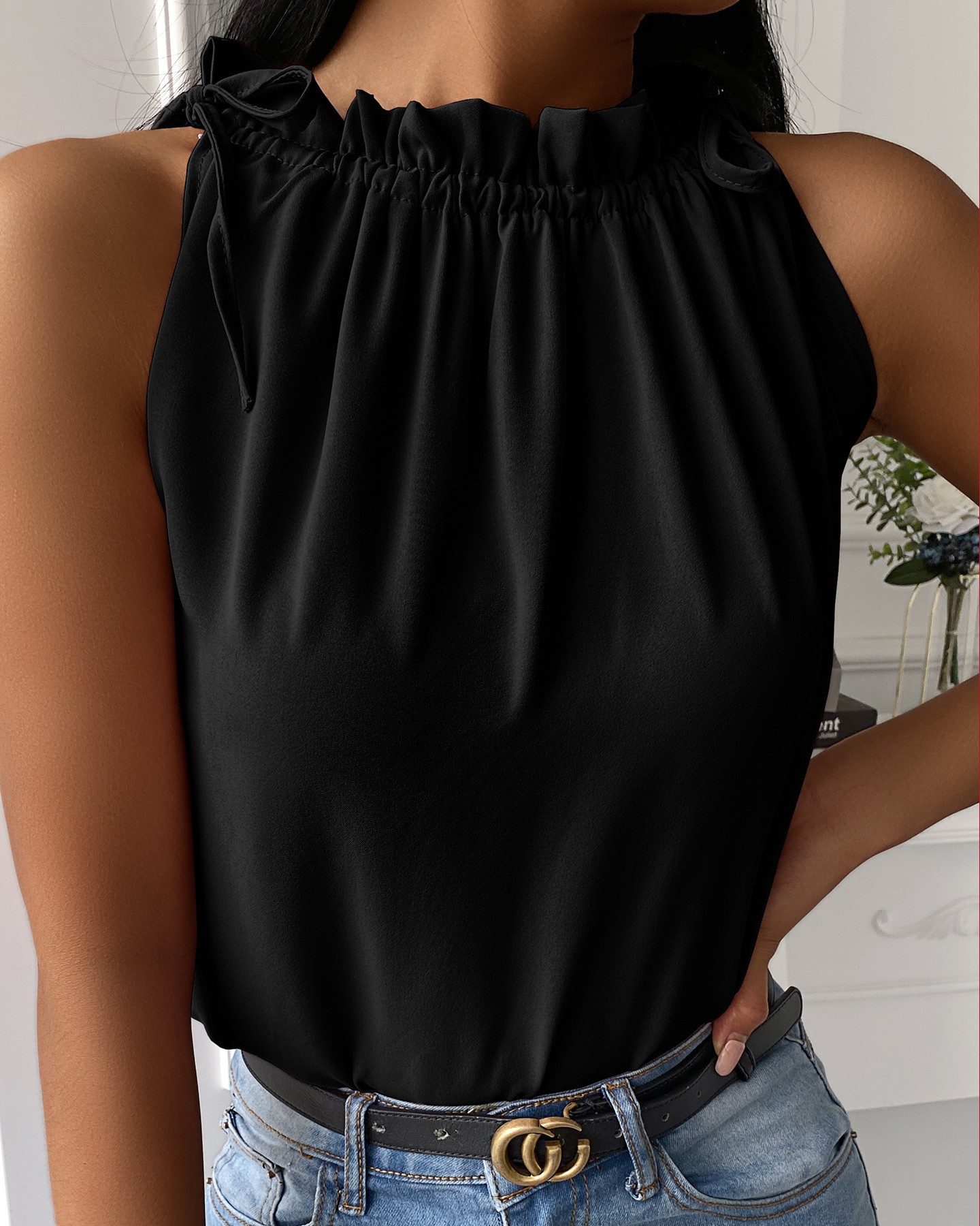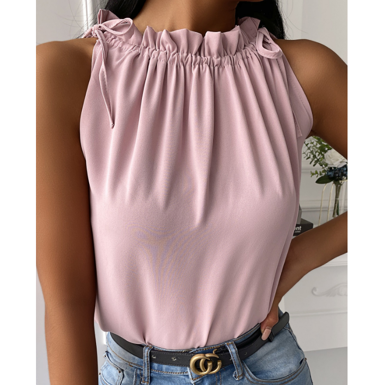 Slim Solid Color High-Necked Sleeveless T-Shirt