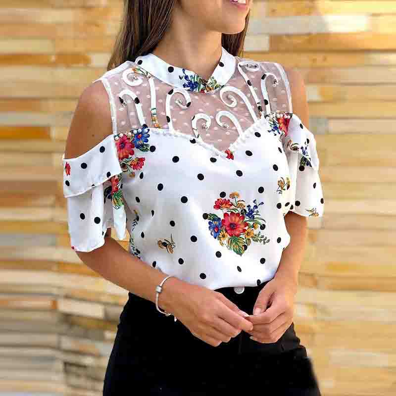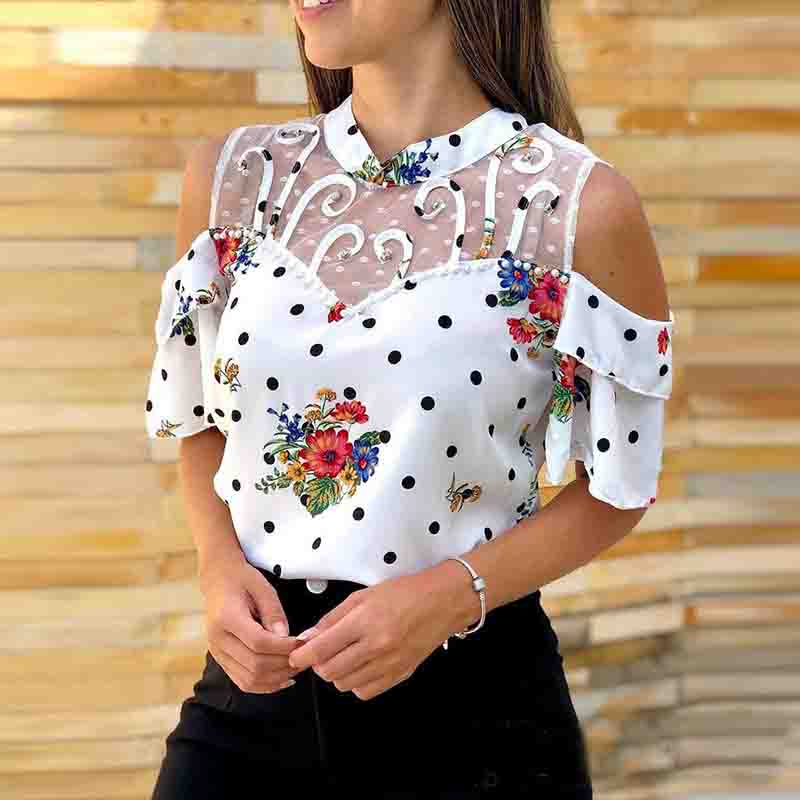 Casual Printed Net Yarn Splicing Blouse