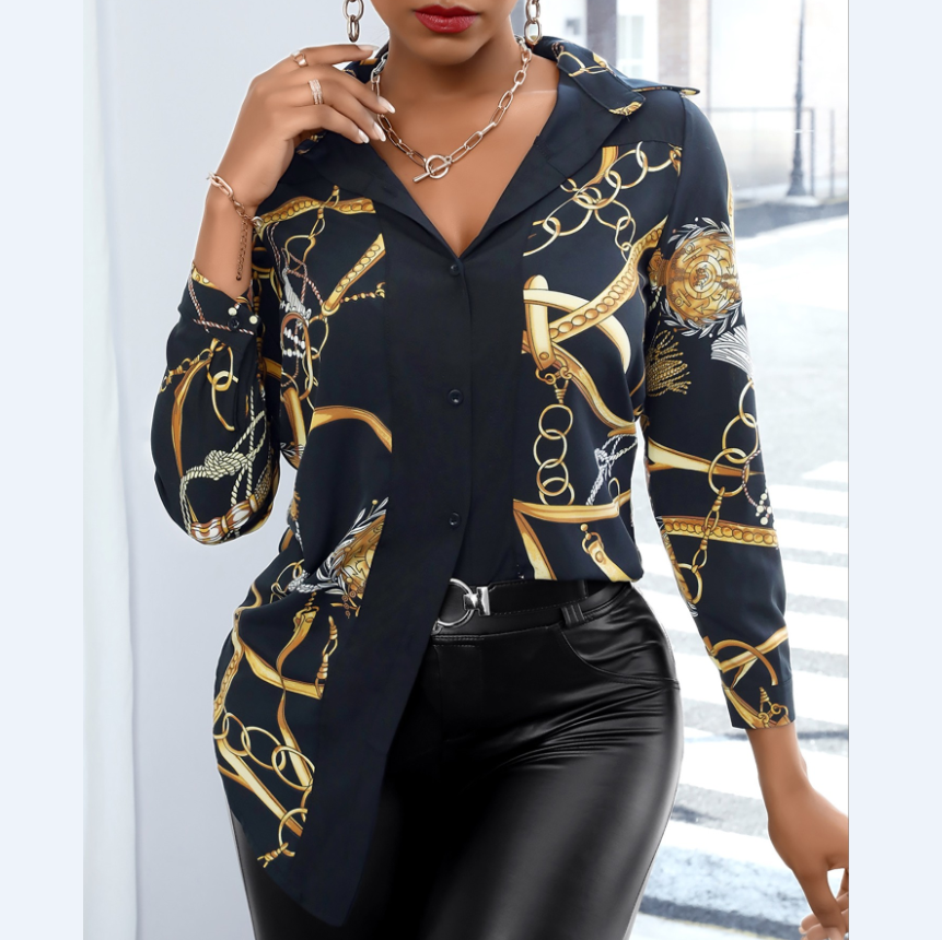 Printed Buttons Design Long-Sleeved Shirt