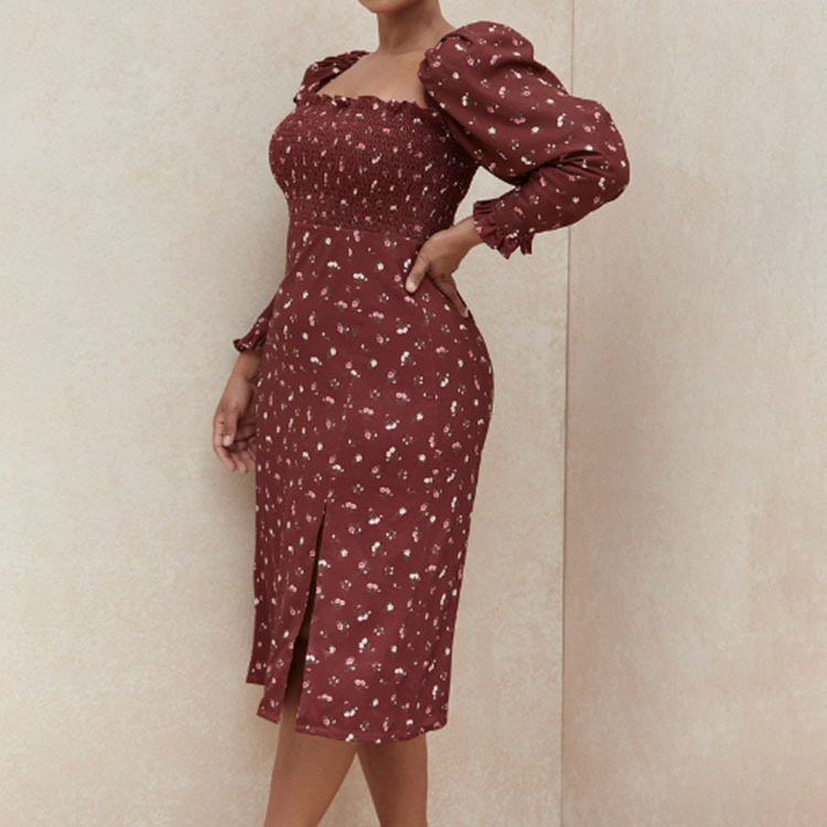 Printed Floral Long Sleeve Split Dress