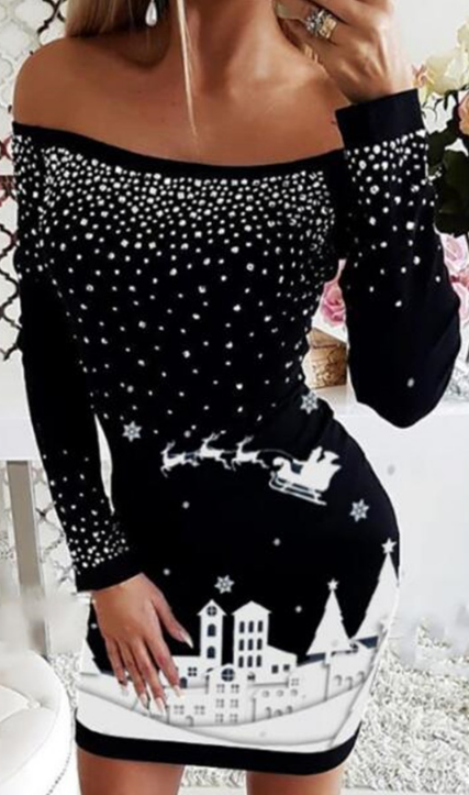 Long Sleeve One-Shoulder Sexy Print Dress