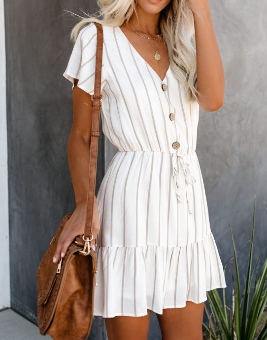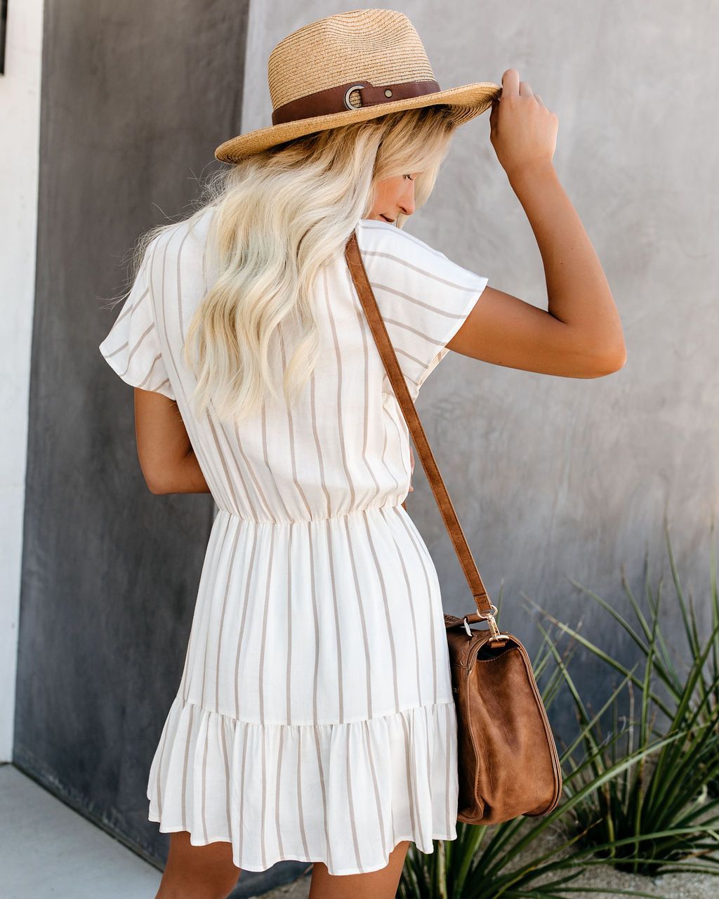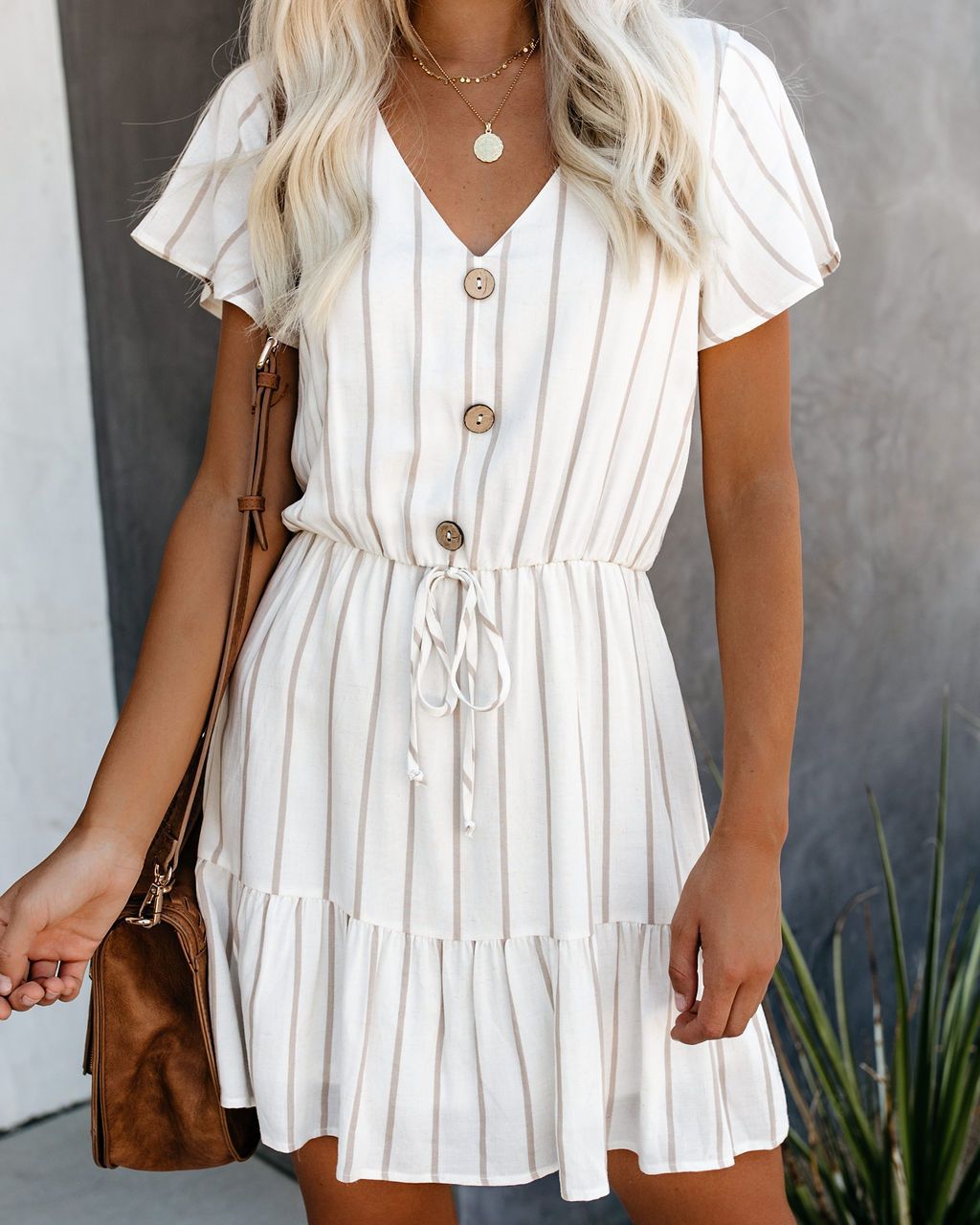 Women'S Casual V-Neck Striped Short Sleeve Dress