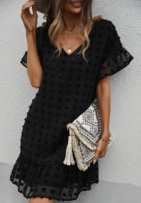 Solid Color V Neck Casual Sexy Chiffon Dress