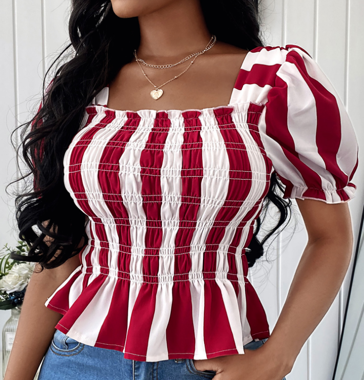 Sexy Short Sleeve Red Striped Shirt