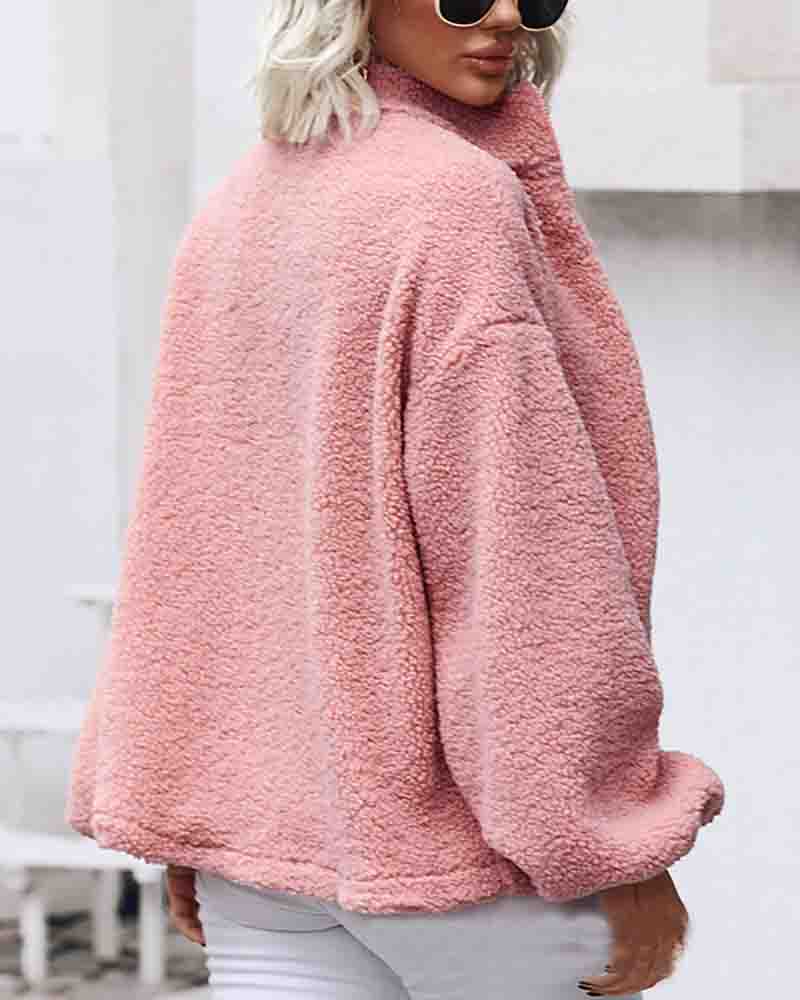 Pink Long Sleeve Zipper Cardigan Coat