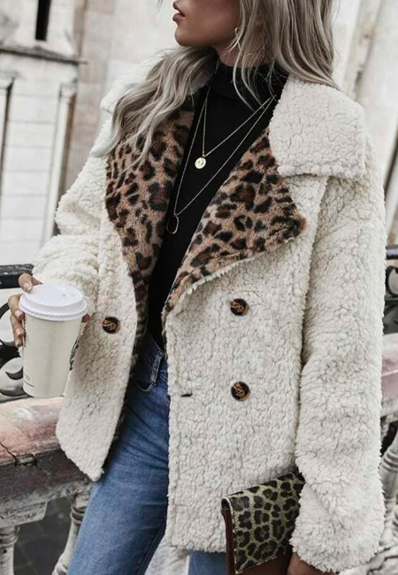 Long Sleeved Leopard Print Spliced Long Sleeve Coat