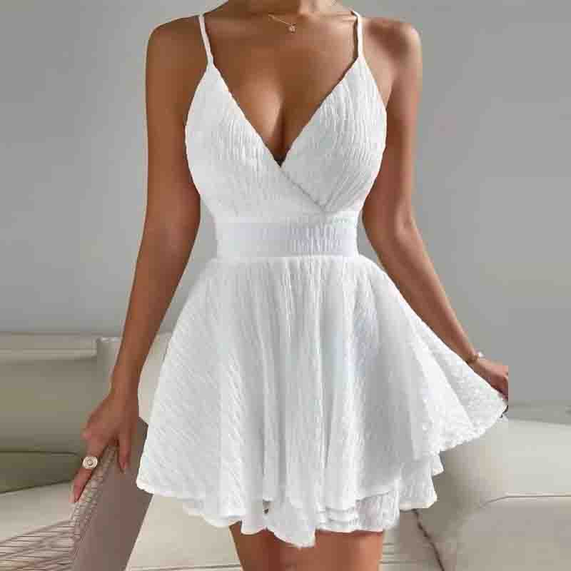 V-Neck Women'S White Sling Sleeveless Dress