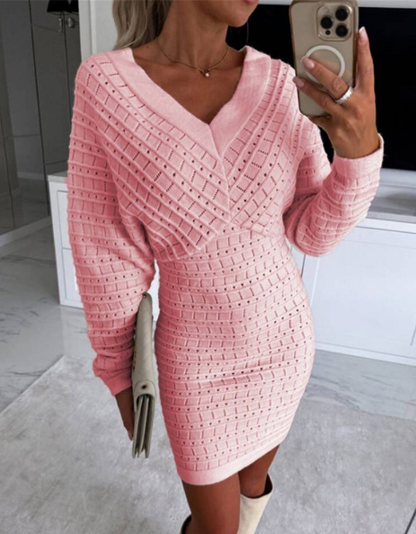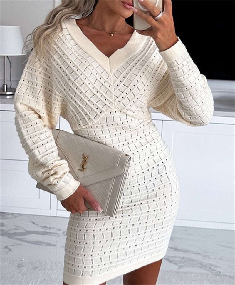 Solid Color Women'S V-Neck Elegant Long Sleeved Dress