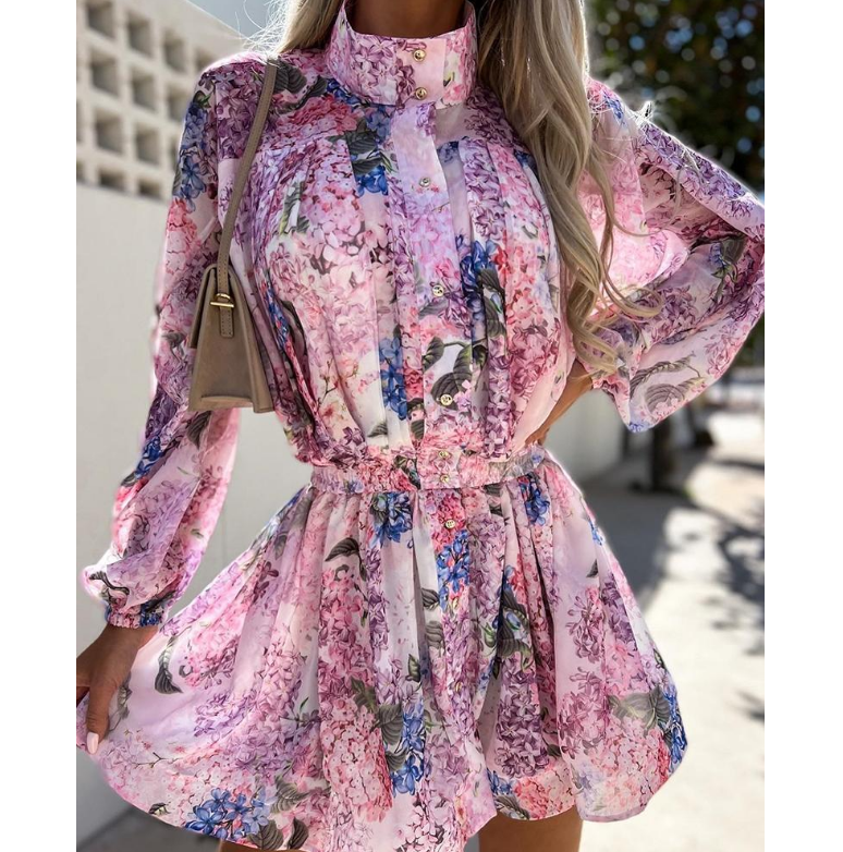 Long Sleeved Women'S Pink Printed Jumpsuit