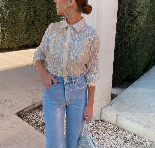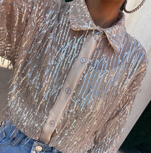 Elegant Black Sequin Long Sleeved Shirt